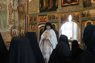Богослужение в обители возглавил и.о. настоятеля Заиконоспасского ставропигиального мужского монастыря Москвы иеромонах Даниил (Константинов). Ему сослужили клирик монастыря протоиерей Владимир Постников и клирик Заиконоспасского ставропигиального мужского монастыря Москвы иеромонах Савва (Буханцев).