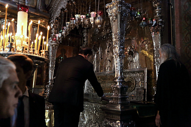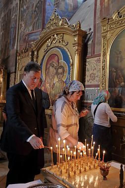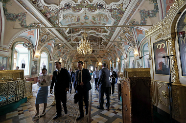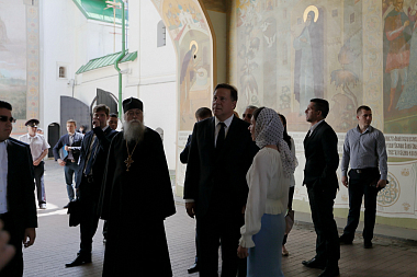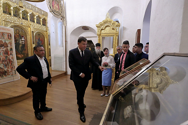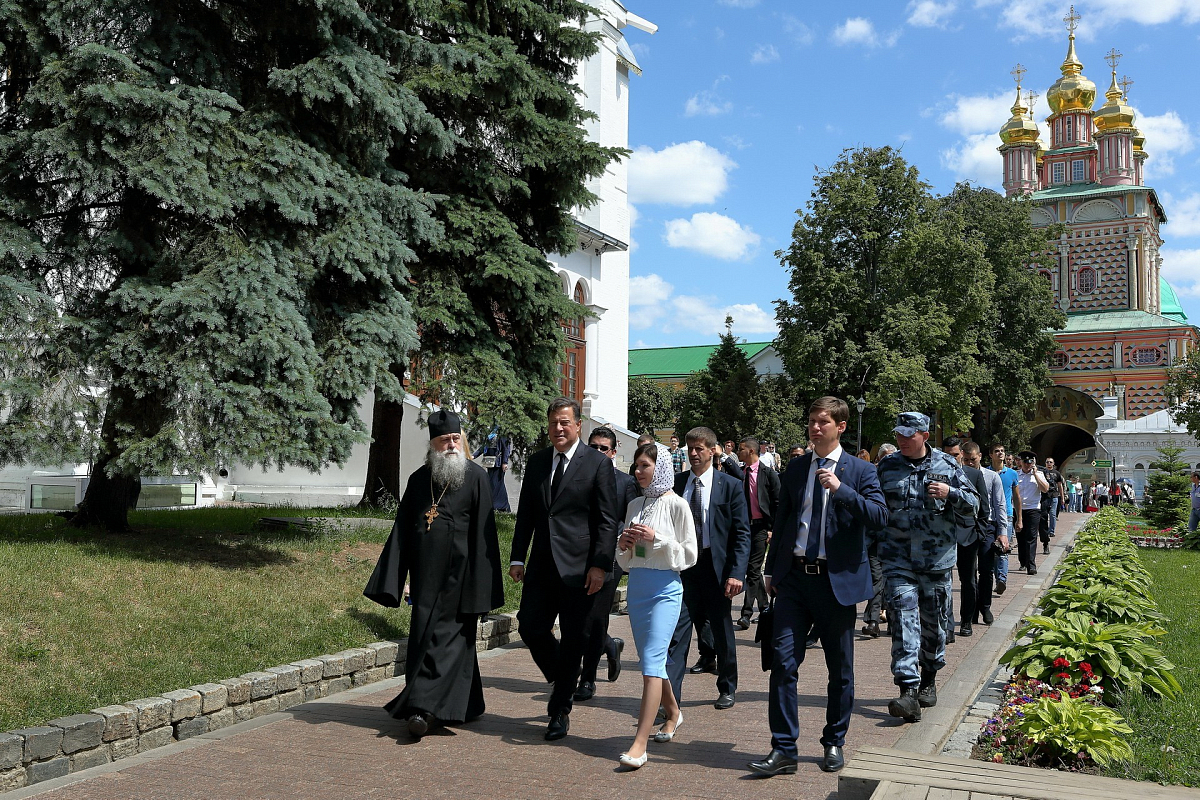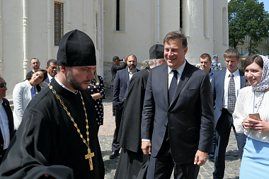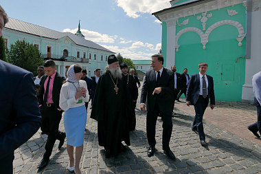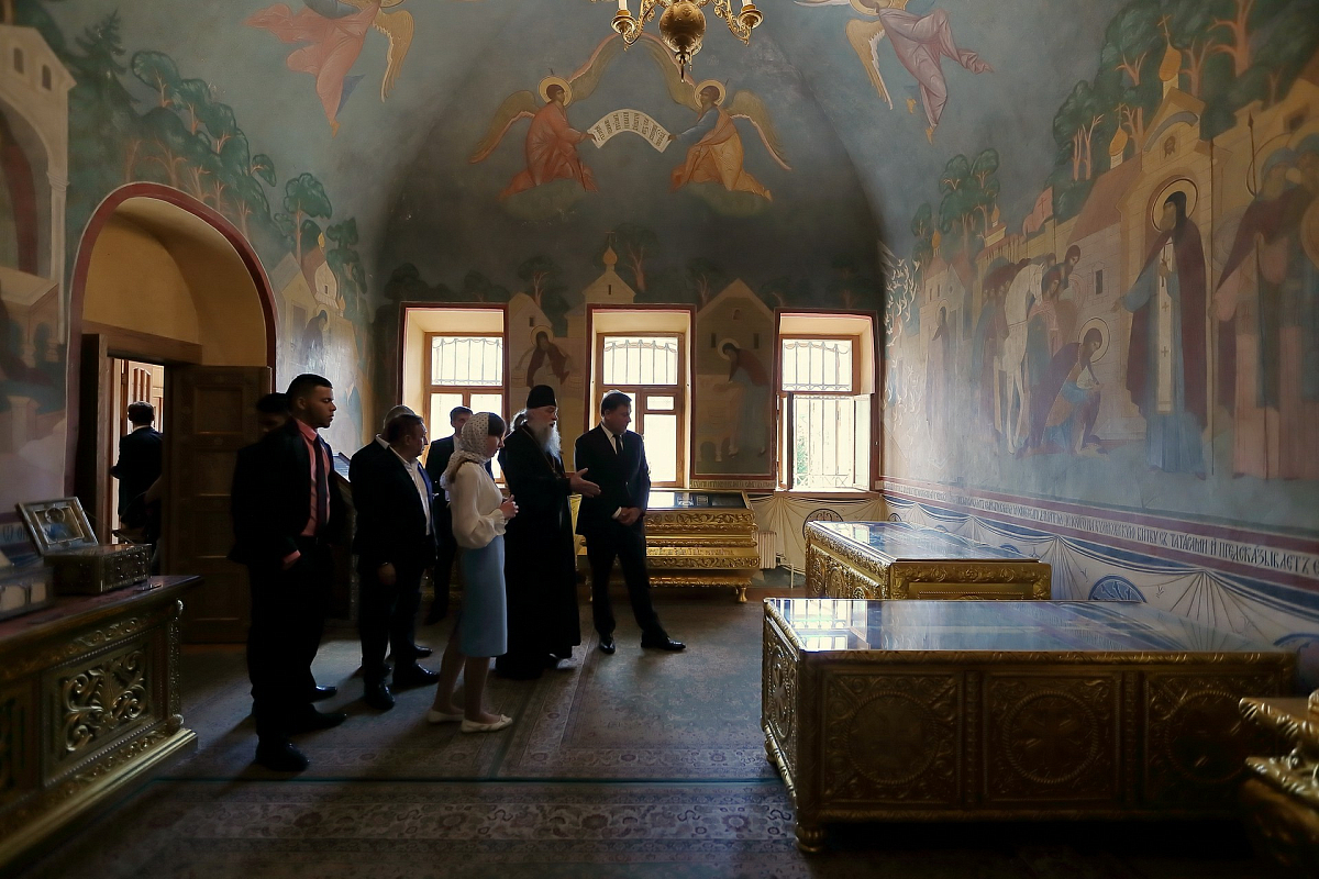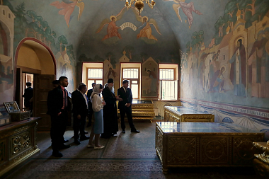 Для Президента и сопровождавшей его делегации была проведена экскурсия по Лавре и предложена монастырская трапеза.