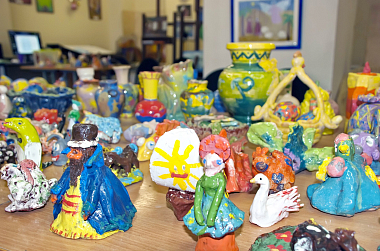 Воспитанники студии в качестве выставочных экспонатов представили на конкурс керамические поделки. Особое место среди работ, заявленных в номинации «Декоративно-прикладное искусство», занимают глиняные фигурки ребят с врожденными тяжелыми недугами. Несмотря на нездоровье, они с радостью занимаются творчеством: лепят, рисуют, создают мультфильмы. «Дети Солнца» для детского коллектива являются действительно солнышками, которые согревают всех, кто находится рядом.