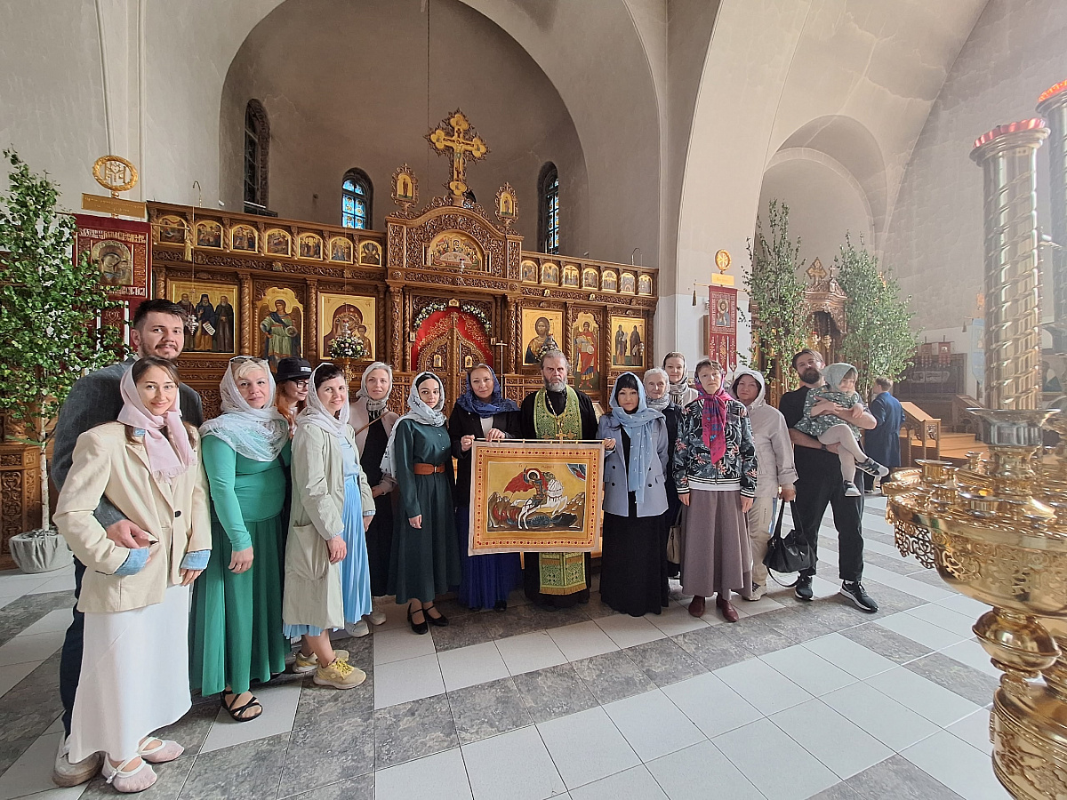 13 июня 2025 года в храме Казанской иконы Божией Матери Санкт-Петербургского подворья Спасо-Преображенского Валаамского ставропигиального мужского монастыря протоиерей Олег Зорин освятил хоругвь «Чудо св. Георгия о змие», выполненную учениками Иконописной мастерской во имя преподобного Алипия Печерского Валаамского подворья.