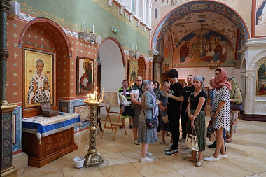 Далее гостей радушно принял Данилов монастырь: богомольцам была предоставлена возможность поклониться мощам святых благоверных князей Александра Невского и Даниила Московского и другим святыням, хранимым в обители; посетить келью преподобноисповедника Георгия Даниловского, осмотреть Троицкий собор и храм Святых Отцов Семи Вселенских Соборов. Обзорное знакомство с находящимися на территории монастыря строениями (Патриаршая резиденция и Отдел внешних церковных связей, дом наместника и надвратная колокольня) завершилось обедом в трапезной.