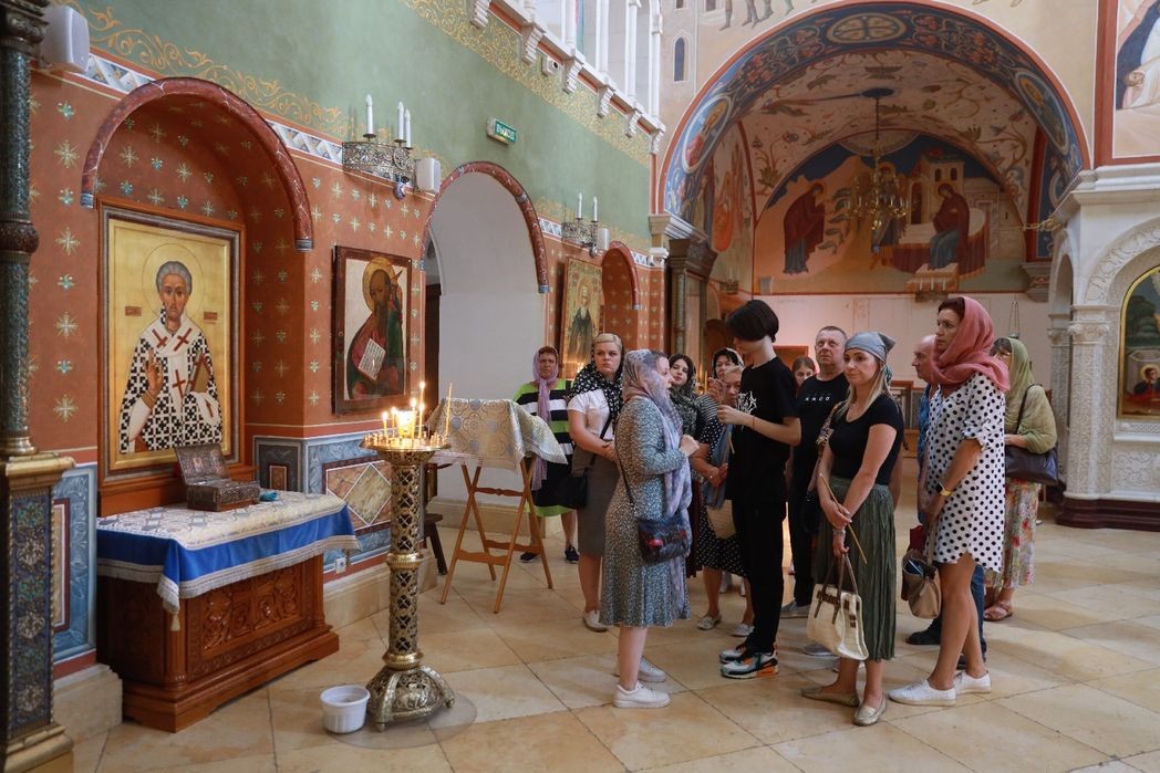 В заключение дня состоялся визит в Зачатьевский женский монастырь: помолившись перед иконой Божией Матери «Милостивая» и поклонившись частицам Животворящего Креста и Гроба Господня, Поясу Пресвятой Богородицы, мощам святого Лазаря Четверодневного и святых праведных Иоакима и Анны в главном соборе обители, посвященном Рождеству Пресвятой Богородицы, паломники вознесли молитву о погибших и усопших. Кроме того, богомольцам была предоставлена уникальная возможность посетить пещерный храм Успения Пресвятой Богородицы, подземную Неопалимовскую церковь и монастырскую костницу.