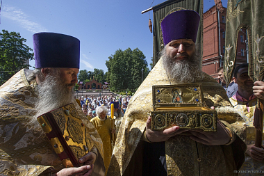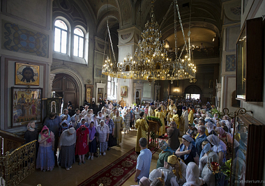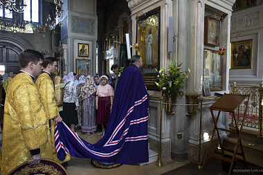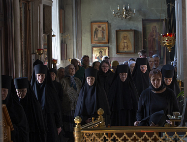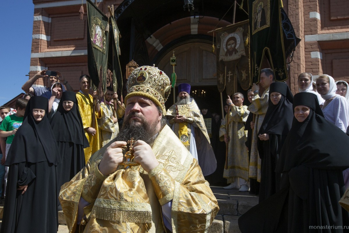 По окончании Литургии прошел крестный ход по чину престольного праздника, в котором приняли участие владыка Дионисий, настоятельница Алексеевского монастыря игумения Ксения с сестрами, духовенство обители, прихожане и паломники.