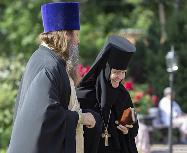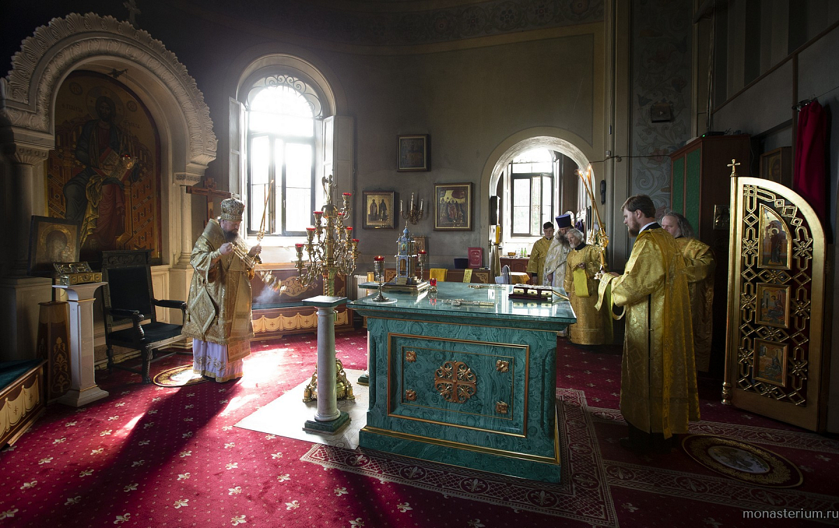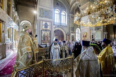 Его Преосвященству сослужили старший священник и духовник монастыря протоиерей Артемий Владимиров, а также клирик обители протоиерей Сергий Теплов.