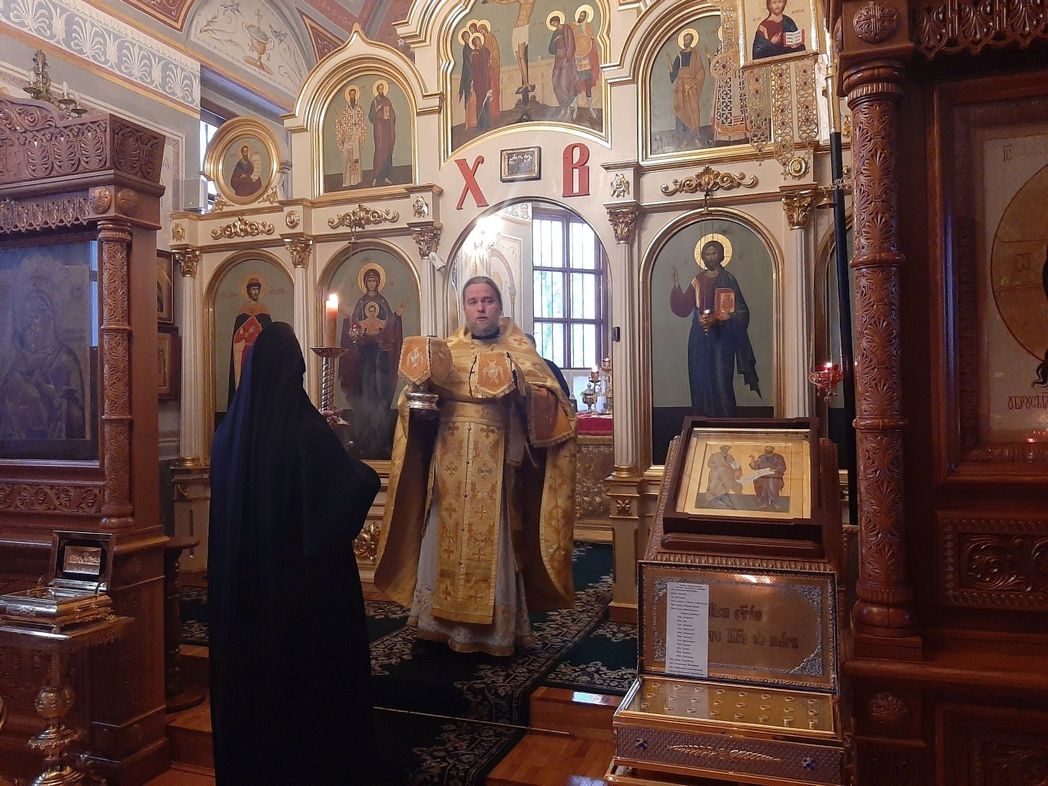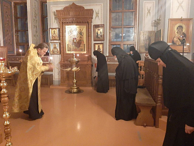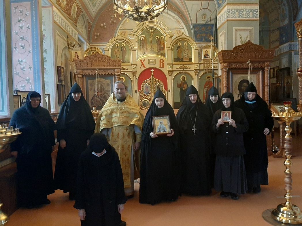 После отпуста старший священник монастыря иеромонах Адриан обратился к сестрам с назидательным словом по случаю отмечаемого события. Он подчеркнул, что исповеднический подвиг чтимых ныне святых начался не в момент арестов, судов, ссылок и казней – это была некая кульминационная точка их подвига, но само исповедничество началось задолго до явных гонений – в то время когда христиане продолжали хранить верность заповедям Божиим в период массового отступничества. Причиной такого отступления стала неукорененность многих номинальных христиан в вере, поверхностное восприятие религии без углубления путем добродетели в истины христианства, отсутствие живого диалога с Богом, подмененного внешней обрядовостью. Такие люди в период испытания поколебались, не только утратив собственную связь с Церковью, но и зачастую обратившись в ее активных гонителей. Поэтому так важно нам углубляться в познание вероучительных истин, хранить связь с Богом, не только эмоциональную, но всматриваясь в истины, открывающиеся в Евангелии, взирая на события, происходящие вокруг нас не просто через закон, а через живое восприятие, в котором и происходит диалог с Богом. Если такое восприятие сформируется в нас, то человек будет смотреть на приходящие искушения не телесно, со страхом, но духовно, не подчиняясь духу мира сего, но свидетельствуя истинность заповеди Божией. Это было верно как во времена жесточайших испытаний, выпавших на долю празднуемых ныне святых, так и в наше время, когда можно со скорбью наблюдать сомнения и колебания некоторых христиан, в которые они впали, не перенеся трудностей и недоумений, связанных с эпидемией. Скорби и испытания неизбежны на пути каждого человека. И если поставить современного человека в те обстоятельства, которые окружали исповедников начала ХХ века, нельзя не признать, что мы еще слишком избалованы и вряд ли смогли бы перенести те тяжелейшие испытания, которые несли предыдущие поколения. И тогда, как и ныне, кто-то использовал эти испытания как ступени с совершенству и путь к святости, а кого-то поглотили страсти, привязанность к духу мира сего. Для того же, чтобы избежать этой привязанности так важно укореняться в живом богословии, в добродетели и познании истин христианства, объединяя труд добродетели с созерцанием таин веры. Тогда находящие испытания не сдвинут нас с твердого камня веры Христовой.