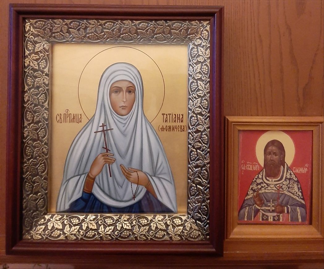 Чин славления совершили перед иконами преподобномученицы Татианы и священномученика Владимира, переданными в дар Аносину монастырю родственниками святых.