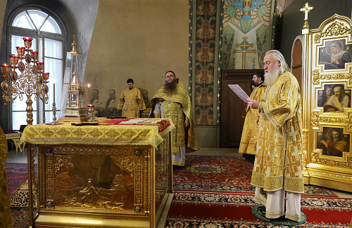 По благословению Святейшего Патриарха Московского и всея Руси Кирилла, богослужение и торжества возглавил председатель Синодального отдела по монастырям и монашеству, наместник Донского ставропигиального мужского монастыря митрополит Каширский Феогност. Его Высокопреосвященству сослужили заместитель председателя Синодального отдела по монастырям и монашеству наместник Саввино-Сторожевского ставропигиального мужского монастыря архимандрит Стефан (Тараканов) и духовенство обители.