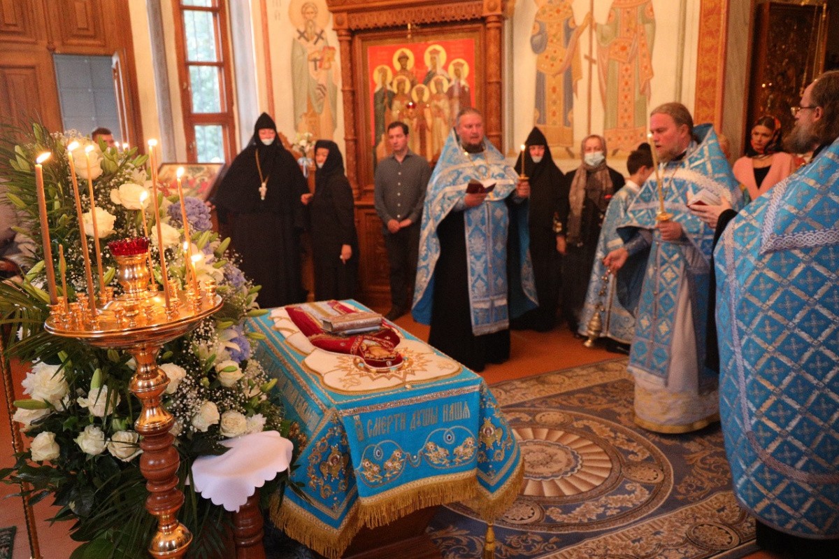 Накануне вечером было отслужено торжественное всенощное бдение с выносом Плащаницы Пресвятой Богородицы. Всю ночь сестры монастыря поочередно молились у Плащаницы, возжигая свечи и воскуряя благовонный фимиам.