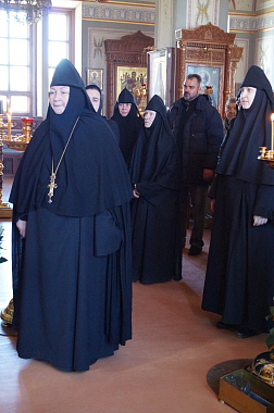 В завершение духовенство и все богомольцы обители были приглашены на праздничную трапезу. Для игумении Марии хор сестер обители исполнил поздравительные и духовные песнопения.