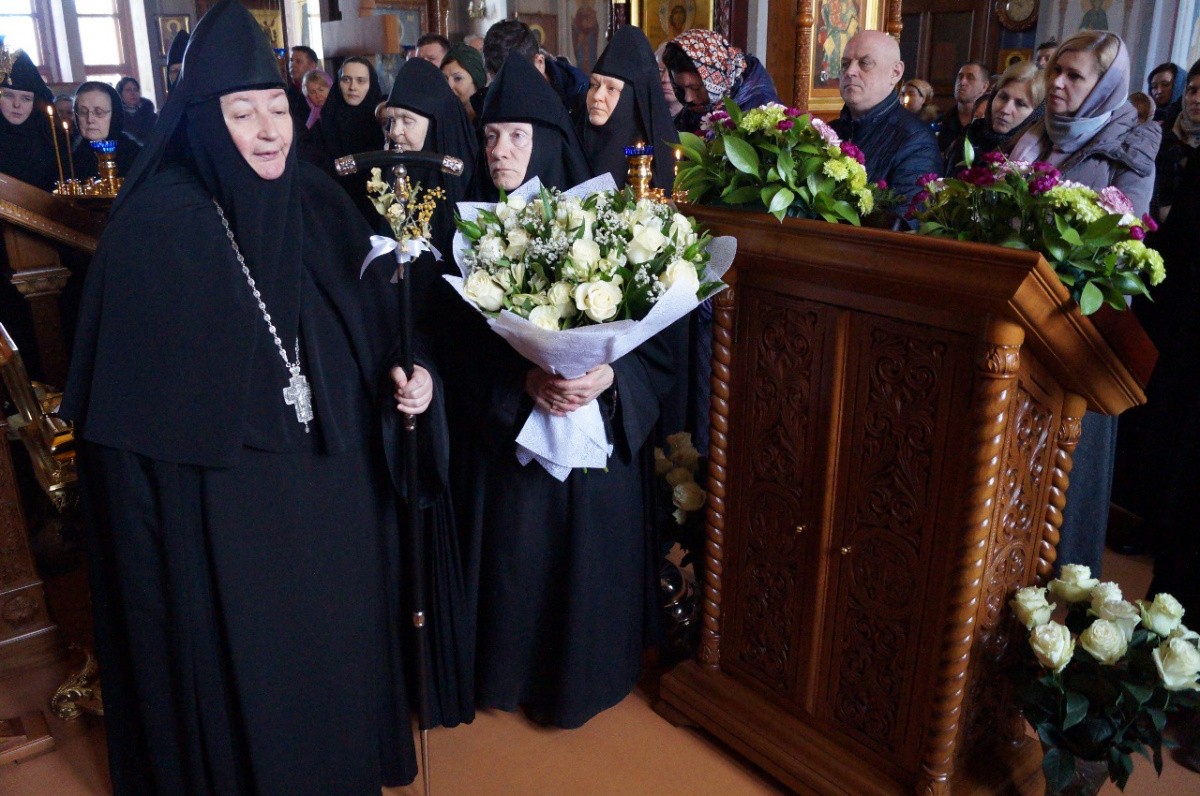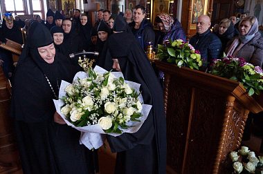Благочинная обители от лица сестер преподнесла матушке игумении букет цветов, выразила благодарность Ее Высокопреподобию и поздравила духовную наставницу с сугубым днем в ее жизни и жизни обители.