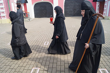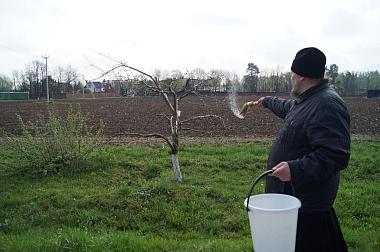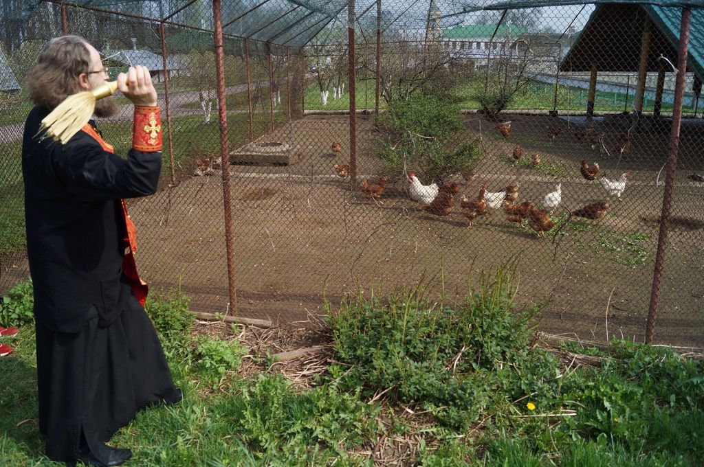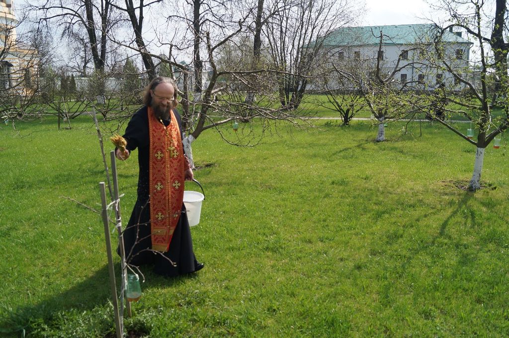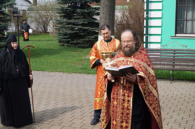 Под колокольный перезвон крестным ходом священнослужители и насельницы обители с молитвенным пением и чтением молитв обошли монастырские угодья: поля, огороды, теплицы, пасеку и монастырский сад, монастырское стадо коров и обитательниц курятника. Поля и животные были окроплены святой водой с молитвой о даровании земле плодородия, животным – здоровья и плодовитости, а также об избавлении от вредителей и стихийных бедствий.