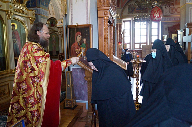 За богослужением священнослужители и насельницы обители сугубо молились о «прекращении вредоносного поветрия..», об исцелении заболевших, а также о упокоении почивших от этой пагубной болезни священнослужителей и мирян.