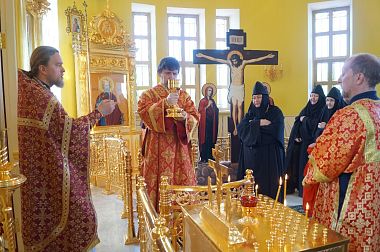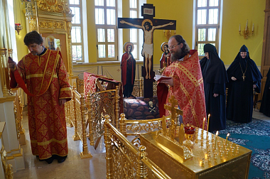 Накануне вечером в Троицком соборе обители было совершено праздничное богослужение в честь святой угодницы Божией.