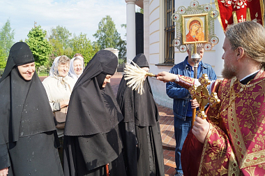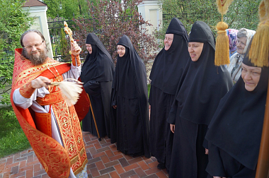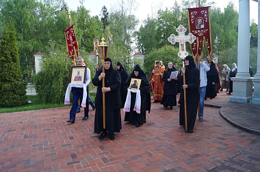 По заамвонной молитве священнослужители обители, настоятельница монастыря игумения Мария (Солодовникова) с сестрами, прихожане и паломники торжественно обошли храм-именинник крестным ходом под пение пасхальных песнопений с хоругвями, иконами, чтением Святого Евангелия и окроплением святой водой всех присутствовавших.