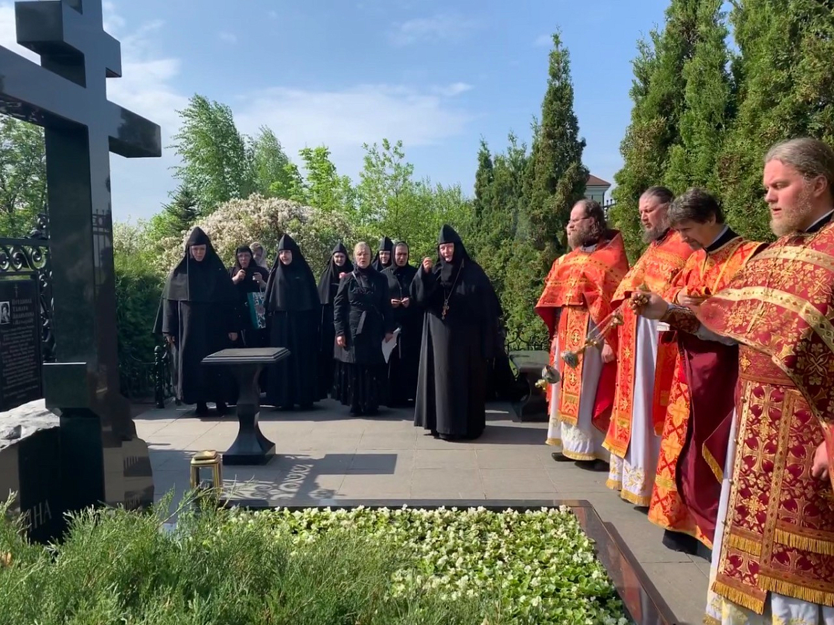 Затем была соборно совершена заупокойная лития на могиле приснопоминаемых Тамары и Олега, в память которых был построен храм святой царицы Тамары тщанием и помощью их благодарных наследников, после чего насельницы и священнослужители обители помолились о почивших приснопоминаемых сестрах Аносиной пустыни.