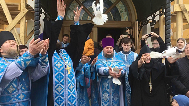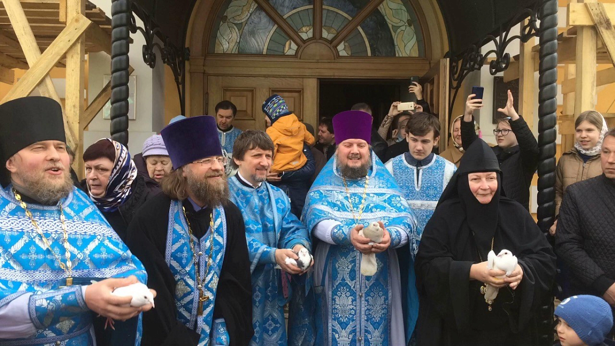 По окончании поздней Божественной литургии возле Троицкого собора обители настоятельница, духовенство, насельницы, прихожане и паломники монастыря по сложившейся традиции совместно выпустили на волю белых голубей.