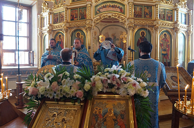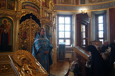 Назидательное слово о празднуемом событии и смиренном подвиге Пресвятой Богородицы произнес старший священник обители иеромонах Адриан (Чаликов), поздравив также всех собравшихся с этим долгожданным светлым двунадесятым праздником.
