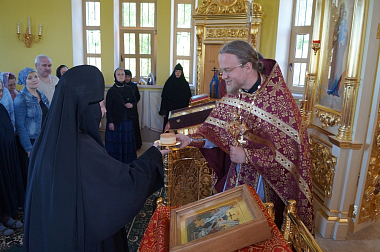По окончании крестного хода была прочитана молитва ко святой праведной царице Тамаре, после чего от лица духовенства старший священник монастыря иеромонах Адриан (Чаликов) поздравил игумению Марию с престольным праздником, преподнеся в дар символ молитвенного предстояния пред Престолом Божиим за духовное сестричество, богослужебную праздничную просфору.