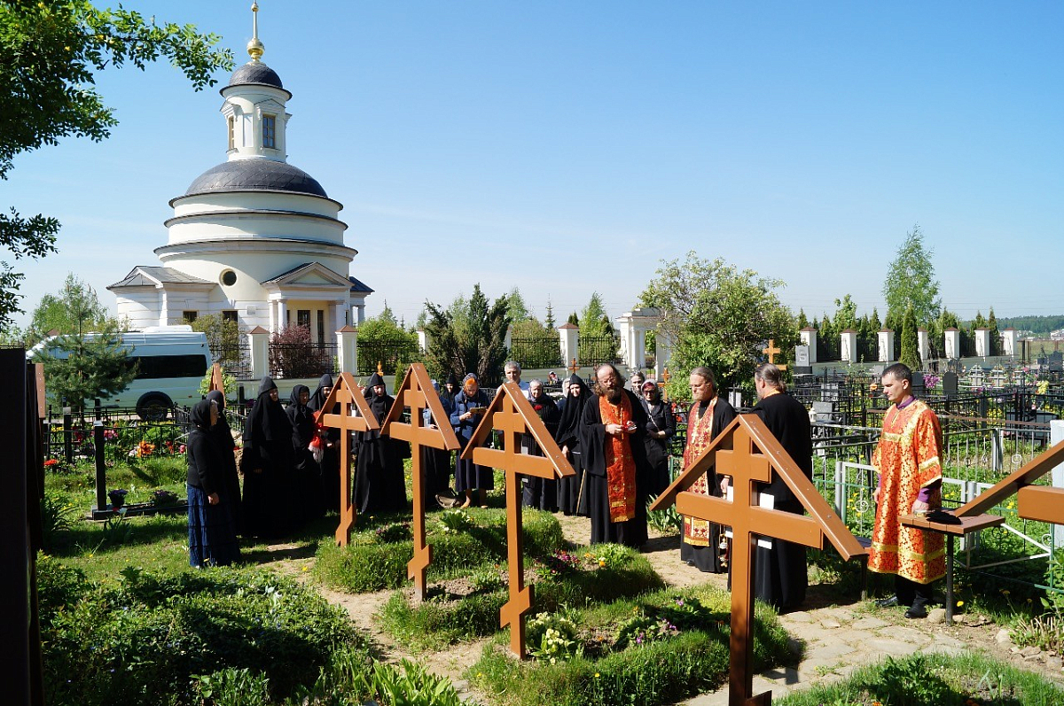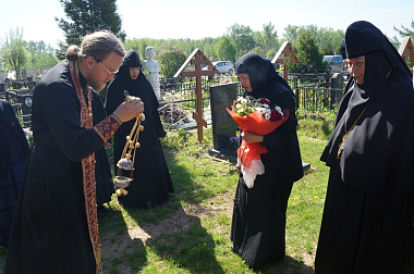В завершение была соборно отслужена заупокойная лития у могил почивших сестер обители, после чего все присутствующие были приглашены на праздничный обед.