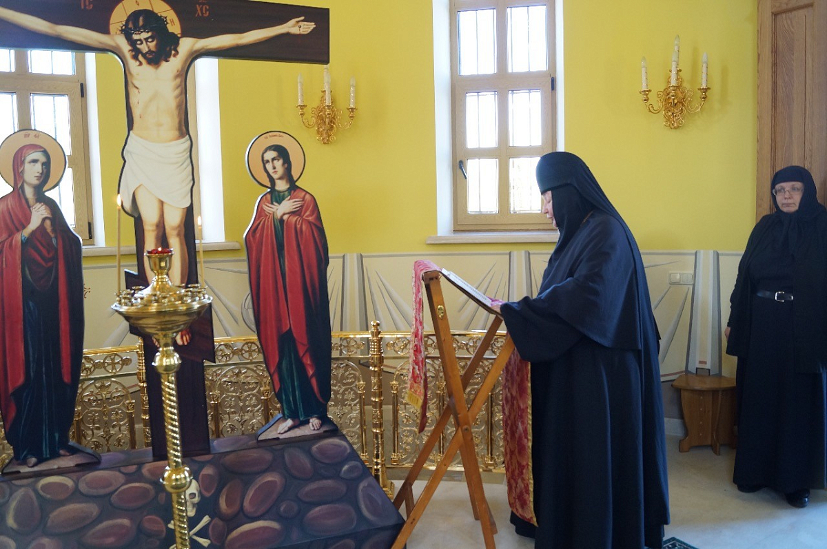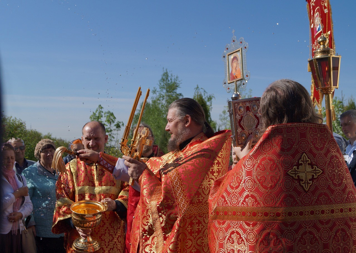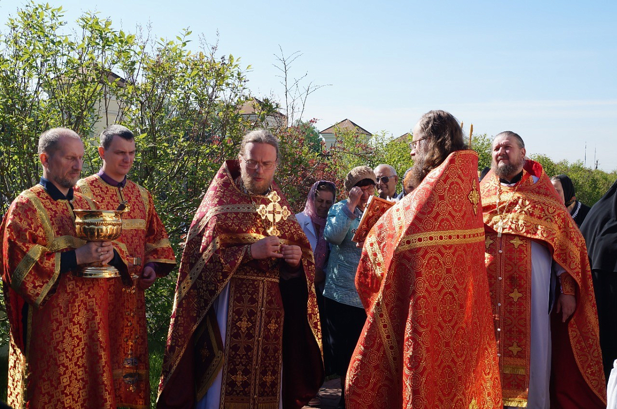 По заамвонной молитве священнослужители, настоятельница монастыря игумения Мария (Солодовникова) с сестрами, прихожане и паломники обители торжественно обошли храм-именинник крестным ходом с хоругвями и иконами с чтением Евангелия, молитвенным призыванием помощи святых и окроплением святой водой.
