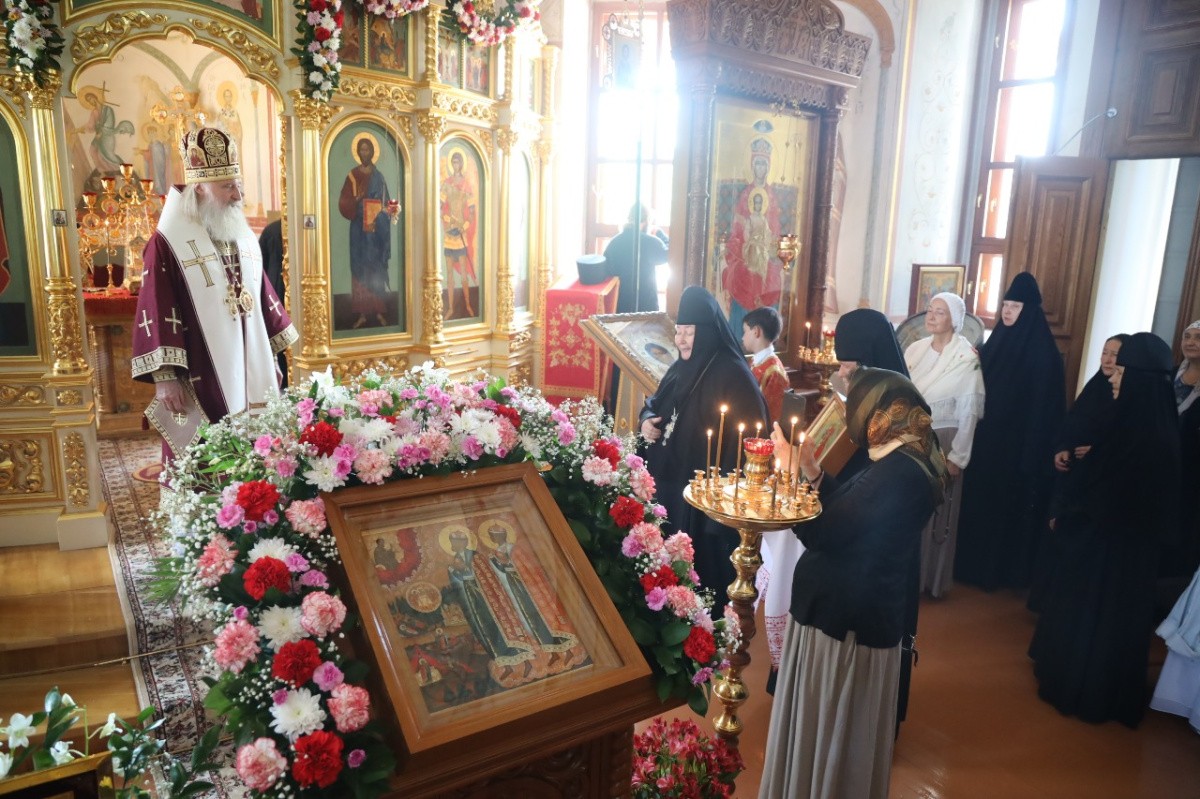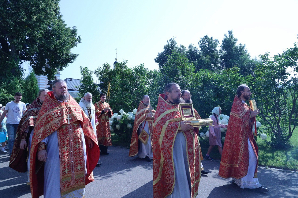 По окончании Литургии был совершен крестный ход вокруг обители с преднесением иконы и мощей святых покровителей монастыря.