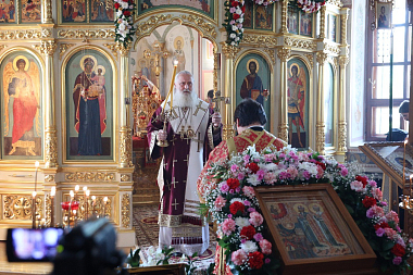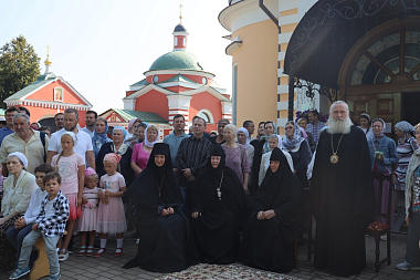 Затем митрополит Феогност поздравил всех собравшихся с престольным праздником монастыря.