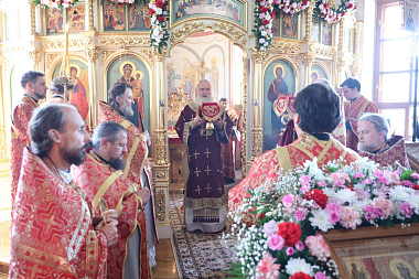 Накануне вечером было отслужено всенощное бдение с пением акафиста святым покровителям монастыря князьям-страстотерпцам Борису и Глебу.