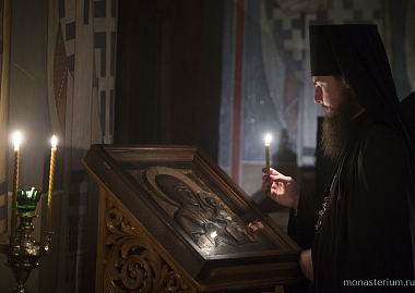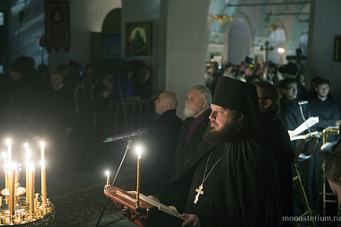 В храме Преподобного Сергия Радонежского Его Святейшество совершил великое повечерие с чтением Великого покаянного канона прп. Андрея Критского.