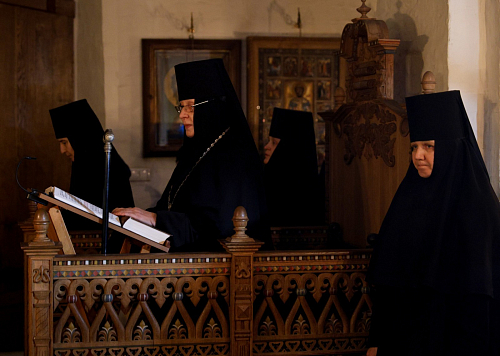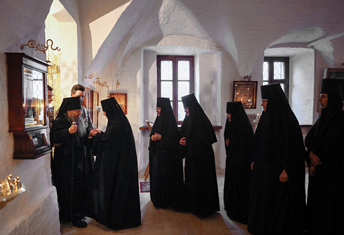 Его Преосвященству сослужило монастырское духовенство.