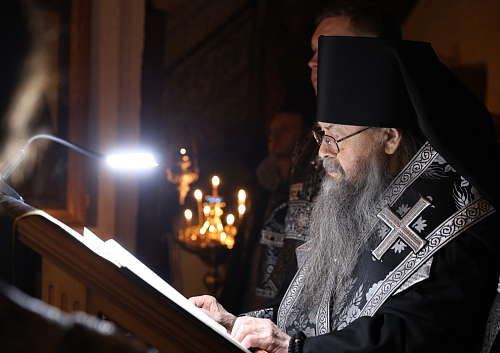 По завершении великого повечерия Преосвященнейший епископ Алексий передал Первосвятительское благословение и обратился к молящимся с архипастырским словом.