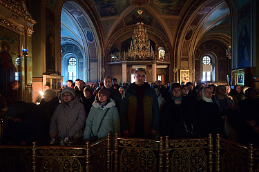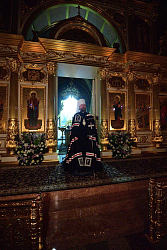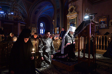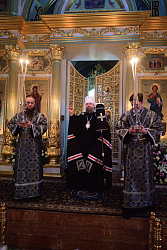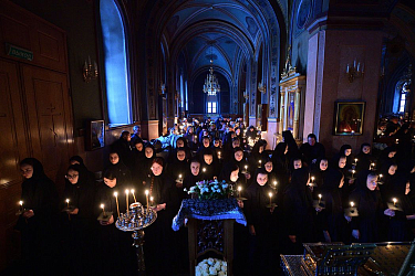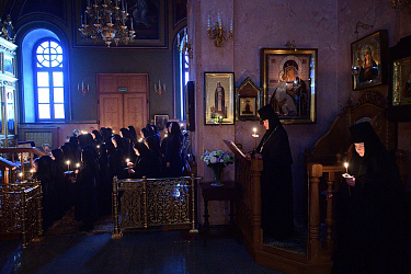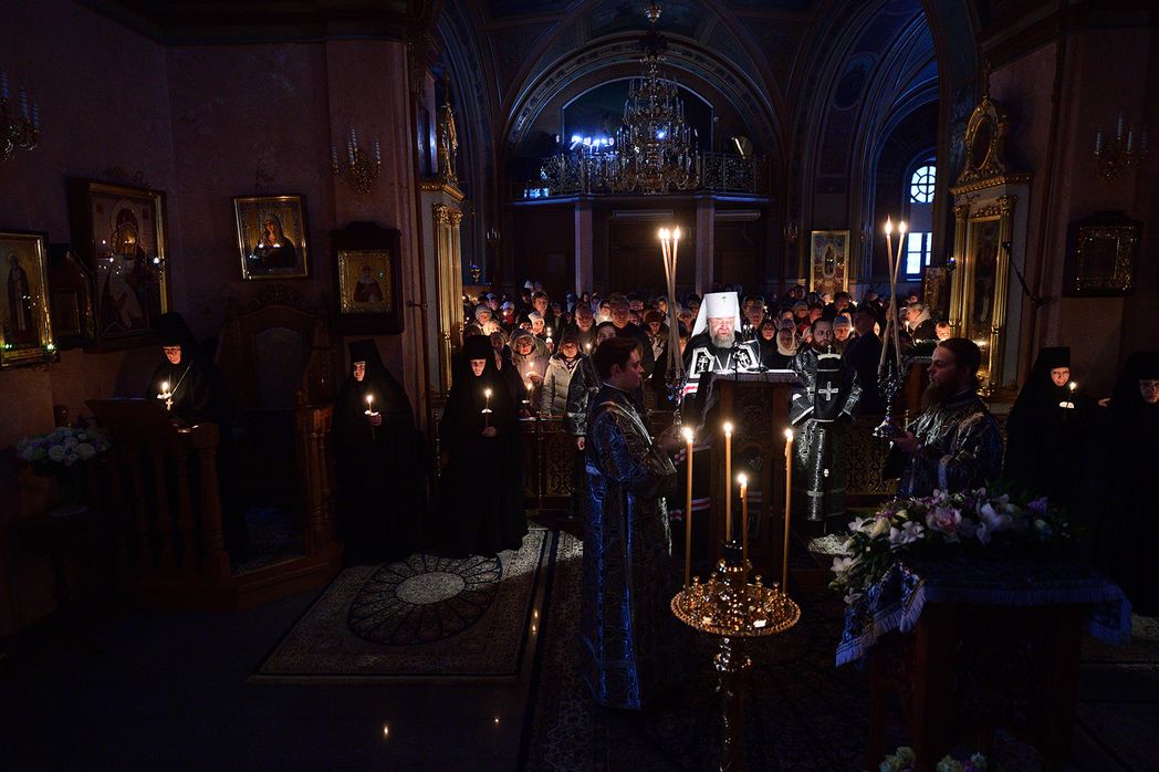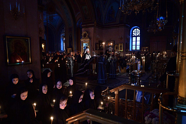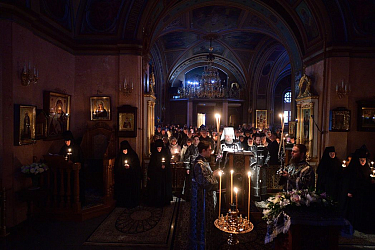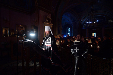 За богослужением молились игумения Феофания с сестрами и воспитанницами детского приюта, прихожане и паломники. По окончании великого повечерия митрополит Григорий произнес проповедь.