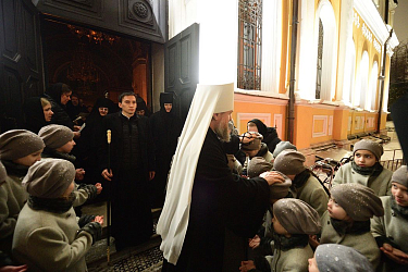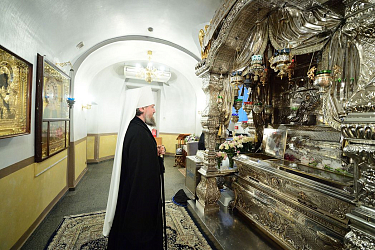По прибытии в обитель Высокопреосвященнейший владыка поклонился честным мощам блаженной Матроны Московской, а затем совершил великое повечерие в храме Воскресения Словущего.