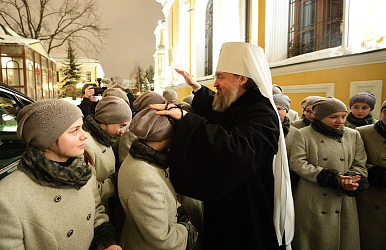 Высокопреосвященнейшего владыку встречала настоятельница игумения Феофания (Мискина) с сестрами.