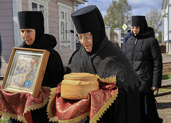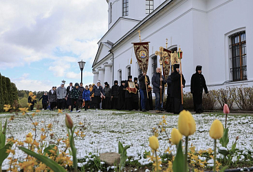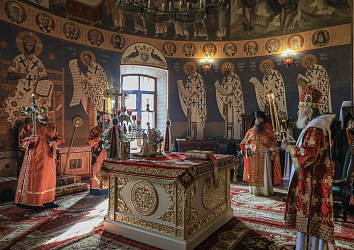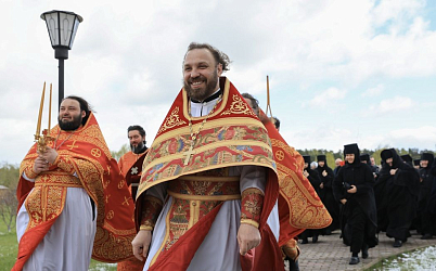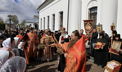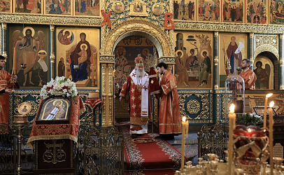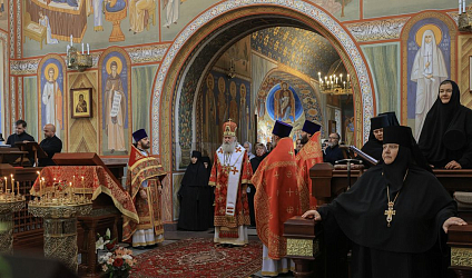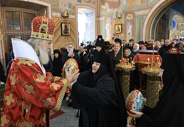 По окончании богослужения митрополит Феогност поздравил игумению Елисавету с праздником Светлого Христова Воскресения и произнес проповедь.