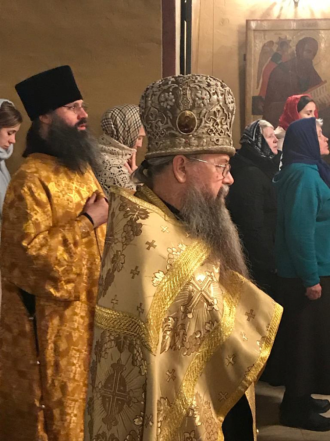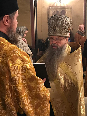 В монастырском храме святых отцов семи Вселенских Соборов архимандриту Алексию сослужили архимандрит Даниил (Воронин) с братией монастыря в священном сане.
