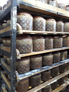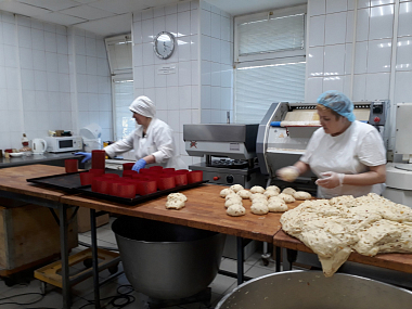 В один замес, а это 200 килограммов творога, изготавливают пасхи весом около 700 граммов. Творог большей частью с подворья – его отличает желтоватый цвет. Добавляют в пасхи растопленное, но не горячее сливочное масло, сахар, изюм и ваниль.