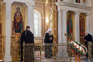 По окончании богослужения митрополит Феогност зачитал Патриаршее поздравление по случаю 25-летия возобновления иноческой жизни в Иоанно-Предтеченском ставропигиальном монастыре.