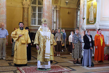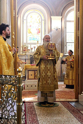 Его Высокопреосвященству сослужили клирики обители.