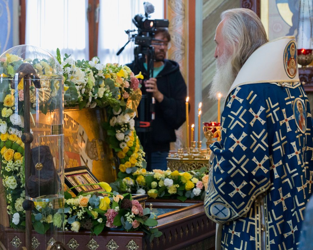 По окончании Божественной литургии был совершен краткий молебен святителю Варлааму Махрищскому у его святых мощей.