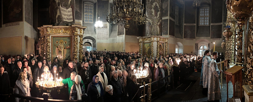 Богослужебные песнопения исполнил сводный хор Свято-Троицкой Сергиевой лавры.