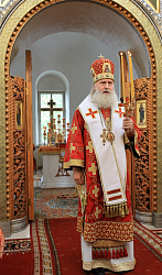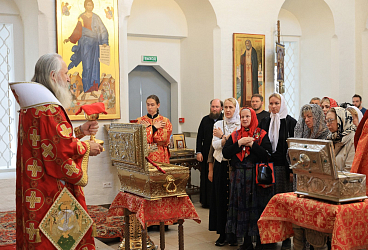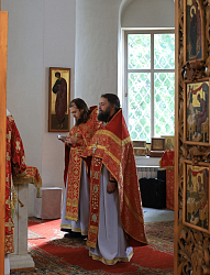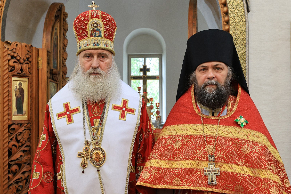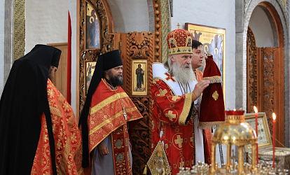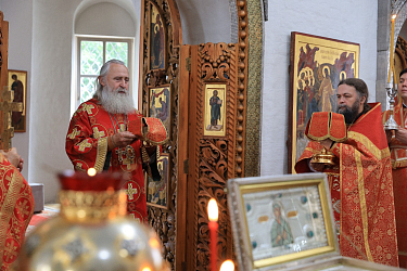Его Высокопреосвященству сослужили наместник Андреевского монастыря игумен Дионисий (Шлёнов), братия обители в священном сане.