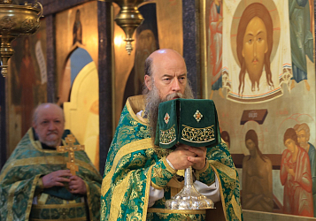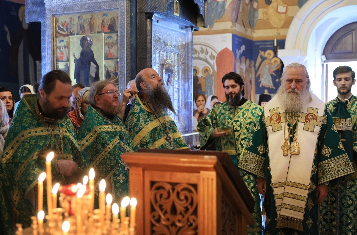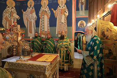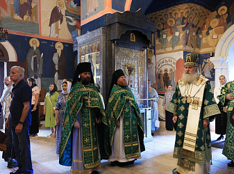 Его Высокопреосвященству сослужили наместник Николо-Угрешского монастыря архимандрит Мефодий (Зинковский), братия обители в священном сане.