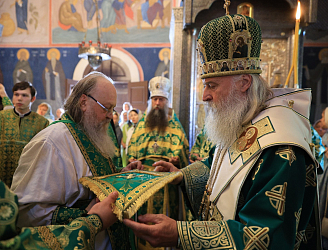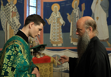 На малом входе указом Святейшего Патриарха Кирилла братия Николо-Угрешского монастыря были удостоены богослужебно-иерархических наград: