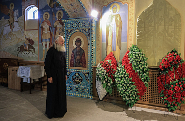 Затем Высокопреосвященнейший владыка помолился на могиле первого наместника Николо-Угрешского монастыря митрополита Вениамина (Зарицкого), который был погребен в нижнем храме Никольского собора Николо-Угрешской обители.