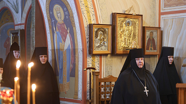 За Литургией молились заместитель председателя Синодального отдела по монастырям и монашеству архимандрит Стефан (Тараканов), настоятельница игумения Елисавета (Жегалова) с сестрами, прихожане и паломники.