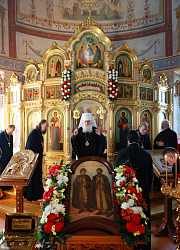 За Божественной литургией Его Высокопреосвященству сослужили клирики обители и приглашенное духовенство.