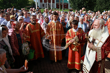 День праздника начался ранним утром с водосвятного молебна святым покровителям обители.