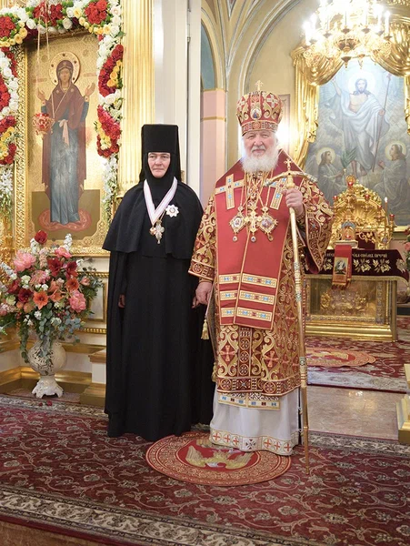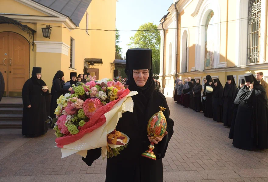 У храма Покрова Пресвятой Богородицы Предстоятеля Русской Православной Церкви встречала настоятельница Покровского монастыря игумения Феофания (Мискина).