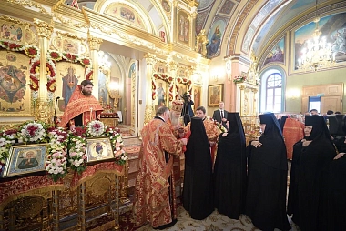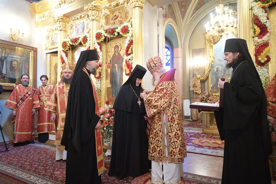 Среди молившихся в храме были игумения Феофания (Мискина), насельницы Покровской обители и воспитанницы монастырского приюта для девочек.