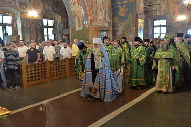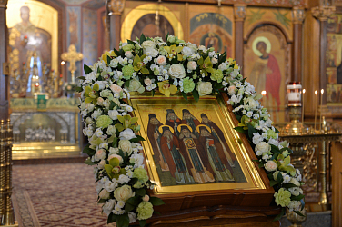 По окончании Литургии был совершен чин славления преподобному Амвросию Оптинскому перед ракой с его святыми мощами.